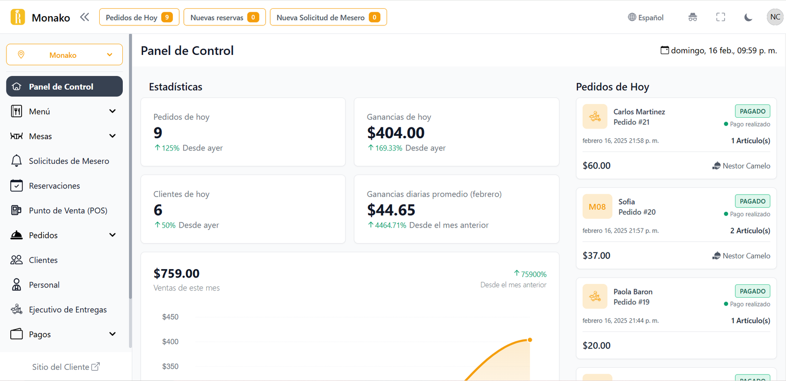 " Podemos rastrear cada pedido en tiempo real, mantener el menú actualizado y gestionar pagos rápidamente. Es como tener un par de manos extra en el restaurante. "